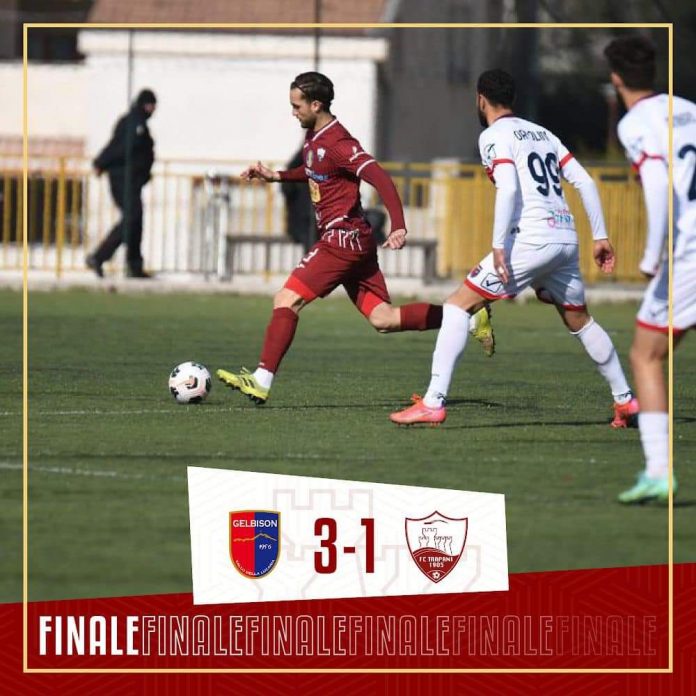 GELBISON (3-4-3): D’Agostino; Gonzalez, Marchetti, Barbetta; Fois (70′ La Gamba), Ambro, Pipolo (75′ Conti), Onda; Oggiano (70′ Di Fiore), Ortolini (66′ Khoris), Gagliardi (64′ Faella). A disp.: Petriccione, D’Angelo, Ferrara, Cardore. All. Esposito.