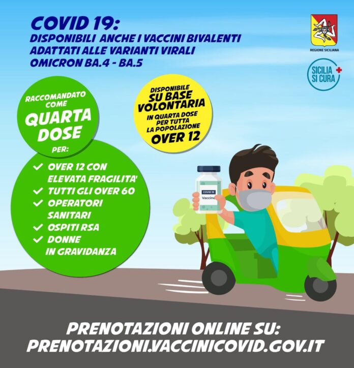 Sono partite in Sicilia le prenotazioni per le seconde dosi booster (quarta dose) con i nuovi vaccini bivalenti adattati alle varianti virali Omicron BA4 e BA5 per tutta la popolazione over 12.