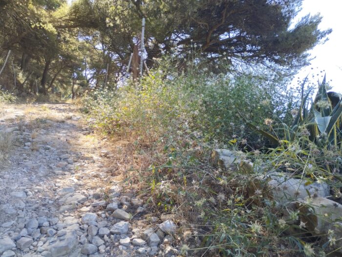 Via Apolinis, area circostante la zona di San Nicola, piano delle forche fino a zona ingresso “Runzi”, rocche Calderaro, le immagini parlano da sole, queste aree sono piene di erbacce e rami secchi, se davvero è stata fatta una scerbatura allora questa è stata fatta male e poco potrebbe servire in caso di principio di incendio.
