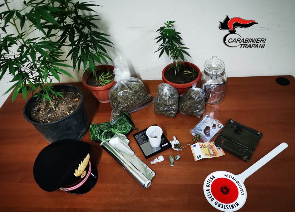 I Carabinieri della Stazione di Trapani – Borgo Annunziata hanno arrestato, in flagranza del reato, Vita Rozzisi, 41 anni, e Cristian Mortillaro, 18 anni, entrambi trapanesi. I militari dopo aver individuato come possibile centrale di spaccio la loro abitazione hanno effettuato una perquisizione, sia personale che domiciliare, che ha consentito il rinvenimento di 330 grammi di marijuana non ancora suddivisa in dosi, 3 piantine della medesima sostanza, la somma contante di 50 euro, 1 bilancino di precisione e materiale vario per il confezionamento. Entrambi sono stati posti al regime degli arresti domiciliari, in attesa dell’udienza di convalida. Nel corso del giudizio direttissimo, che si è svolto nella giornata di ieri, il giudice ha convalidato gli arresti operati dai Carabinieri e, contestualmente, ha imposto a entrambi gli arresti domiciliari con braccialetto elettronico.