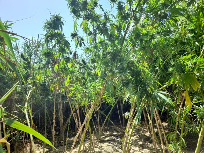 La scorsa notte la guardia di finanza ha individuato, nell’agro del Comune di Salemi, una piantagione di marijuana occultata all’interno di un fitto canneto. 32 piante distribuite in un impervio appezzamento di terreno caratterizzato dalla presenza di fitta vegetazione. Le piante, alte circa 3 metri, erano giunte a fioritura ed erano pronte per la raccolta e la successiva fase di deumidificazione. La piantagione è stata individuata durante una ricognizione di volo della Sezione Aerea di Palermo e come da prassi segnalata al reparto delle fiamme gialle territorialmente competente, in questo caso la Tenenza di Castelvetrano, che sul luogo ha trovato anche vari attrezzi agricoli, nonché un rudimentale sistema di irrigazione collegato ad un attiguo torrente. Le piante, una volta essiccate, avrebbero consentito una produzione di marijuana per un valore di almeno 80.000 euro. Le indagini delle Fiamme Gialle sono ancora in corso per accertare l’identità dei responsabili dell’attività illecita.