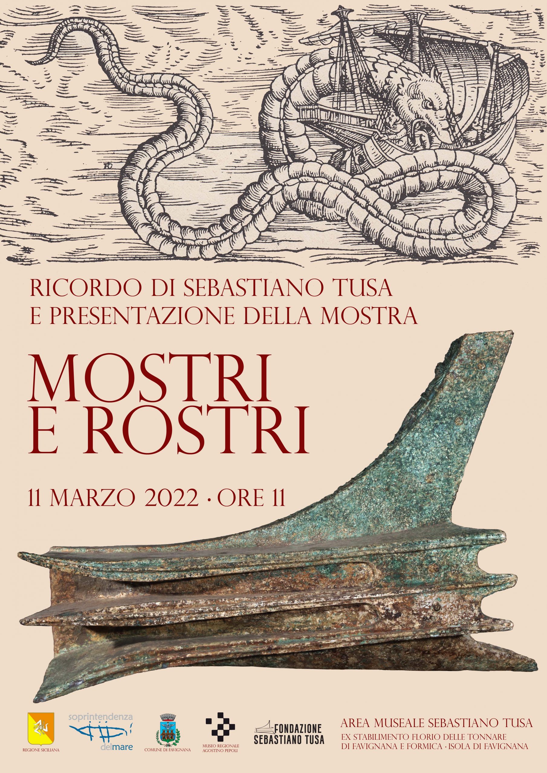 Venerdì 11 marzo, alle ore 11.00, presso l’area museale dell’ex Stabilimento Florio delle tonnare di Favignana e Formica, è in programma l’anteprima della mostra “Mostri e Rostri”, realizzata dalla Soprintendenza del Mare della Regione Siciliana, in ricordo dell’archeologo Sebastiano Tusa, già cittadino onorario del Comune di Favignana – Isole Egadi.