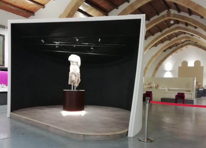 La statua di Venere è tornata in esposizione al Museo Lilibeo di Marsala da dove mancava da oltre un anno. Il nuovo allestimento, che si è reso necessario a causa del precario stato di conservazione del piano d’appoggio dell’opera, ne migliora l’esposizione, valorizzando il “guscio” che l’architetto Minissi aveva progettato per il Museo nel 1986 e che accolse per un breve periodo anche l’Auriga di Mozia.