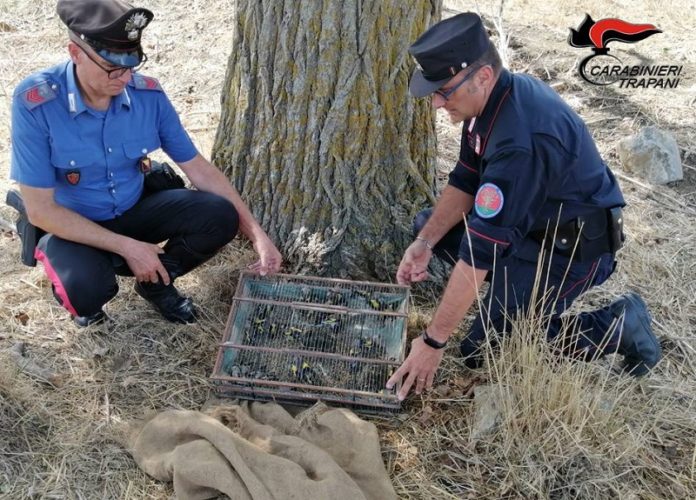 Luomo è stato sorpreso ieri dai militari operanti a Castellammare del Golfo – località Inici – mentre si trovava nascosto all’interno di un riparo posticcio intento ad effettuare l’attività di uccellagione mediante l’utilizzo di reti manovrate tramite un cordino a scatto. Al centro delle reti adoperate per la cattura erano posti esemplari di carduelis carduelis (cardellino) vivi, catturati in precedenza ed utilizzati come veri e propri richiami, con le zampette legate a dei paletti per il tramite di un’imbracatura in modo da consentire il movimento delle ali ma non il volo. Nel corso dell’attento sopralluogo effettuato nella zona interessata dai militari dell’Arma, sono state rinvenute anche due gabbie, una posta adiacente all’area dove erano collocate le reti – anche in questo caso all’interno vi era un esemplare della stessa specie usato come richiamo vivo, e un’altra, occultata da un sacco di juta, in cui erano stipati ulteriori 27 esemplari di cardellino e 2 di verzellino, appena prelevati in natura, frutto dell’odierna attività di uccellagione.