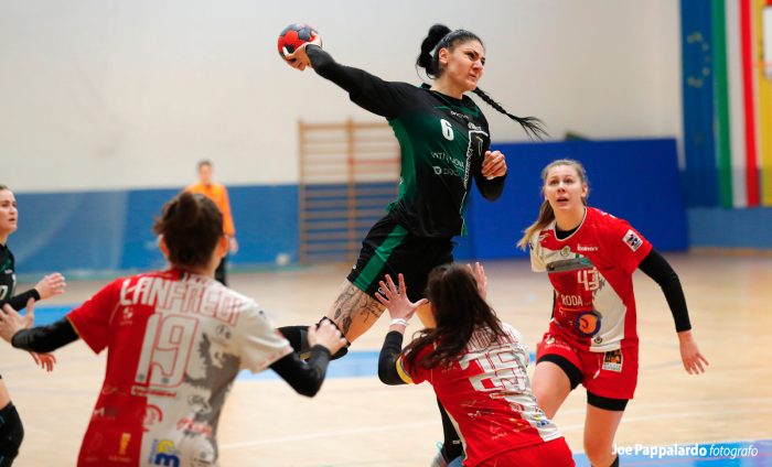 PRIMO TEMPO: Gara un po’ lenta, anche per via dello stop che ha caratterizzato il campionato in queste ultime settimane. Nonostante ciò l’Handball Erice è riuscita a gestire l’incontro, che l’ha vista sempre in vantaggio. L’allungo è già deciso nella prima parte del match, con le ericine sul 9-5 dopo quindici minuti. Mrkikj e Coppola in attacco, oltre alle parate di Brkic e Iacovello, hanno spinto l’Handball Erice alla conclusione della prima frazione di gioco sul 17-9.