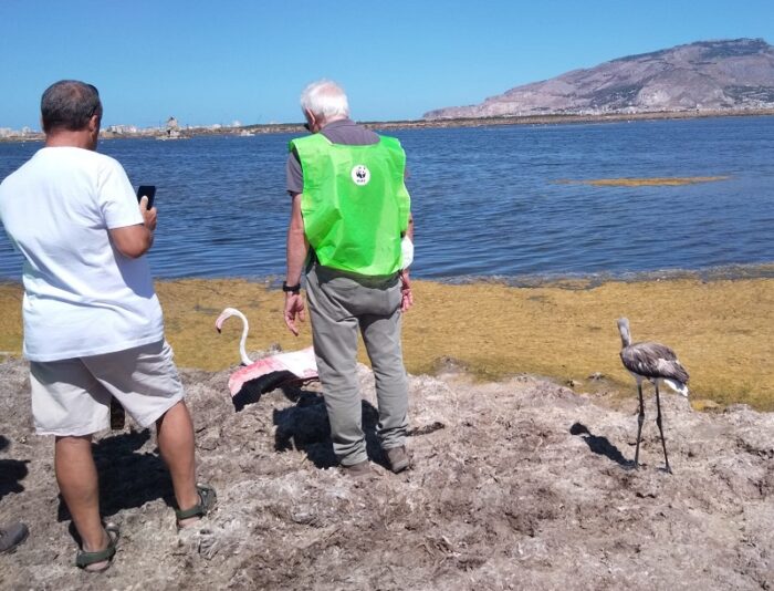 Il tutto, dal recupero al rilascio, è stato possibile grazie alla collaborazione di cittadini, volontari e istituzioni con l’unico intento di preservare la vita a questi due stupendi esemplari della nostra fauna selvatica. Il Fenicottero adulto è stato recuperato sulla riva del litorale della Bandita a Palermo dopo giorni che era stato avvistato a cercare cibo lungo la costa, dalla foce dell’Oreto alla foce dell’Eleuterio, e, non trovando l’ambiente e il cibo adatto, debilitandosi oltremodo, presentava chiari segni di debolezza agli arti e alle ali. Il recupero è avvenuto grazie ad un cittadino, simpatizzante del WWF che ha avvisato il Nucleo Protezione e Primo Soccorso Fauna Selvatica del WWF Sicilia Nord Occidentale che ha provveduto domenica pomeriggio al recupero del povero fenicottero in difficoltà. Quindi, messo in sicurezza, ha ricevuto le prime cure decise insieme al Centro Recupero Fauna Selvatica LIPU di Ficuzza. Fatta la diagnosi di debilitazione per mancanza prolungata di cibo ma viste le condizioni di buona salute generali si è deciso di rimetterlo in natura quanto prima possibile in una zona ricca di alimentazione naturale per lo stesso.