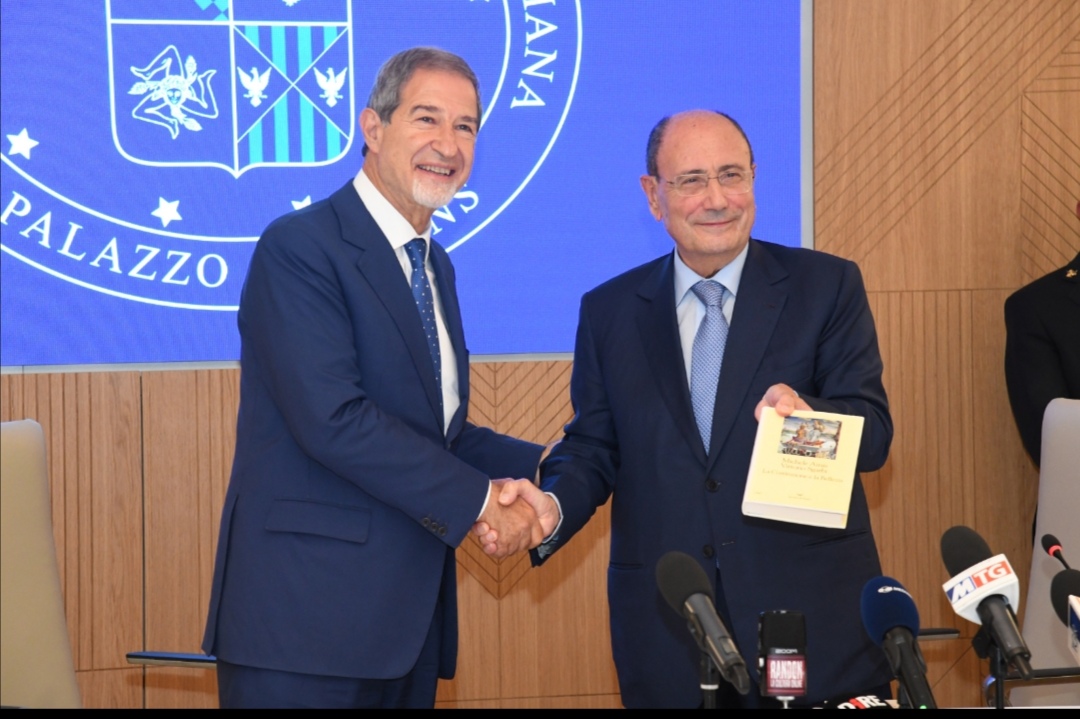 Al tradizionale passaggio di consegne a Palazzo Orleans presenti anche i familiari del neo governatore. Nel corso della cerimonia Schifani e Musumeci si sono donati reciprocamente un libro.