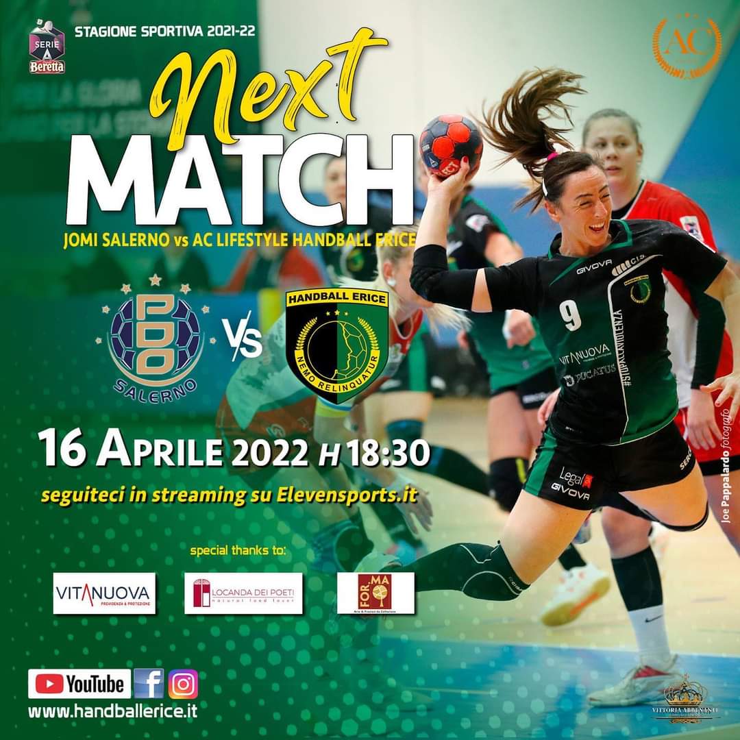 Dopo il rinvio, causa Covid, della sfida con Cassano Magnago, l’Handball Erice è pronta a tornare in campo. La penultima giornata di Serie A Beretta vedrà le Arpie impegnate in trasferta contro la seconda forza del campionato, la Jomi Salerno. Lo scontro andrà in scena oggi alle 18:30 e sarà visibile in streaming su Elevensport.it