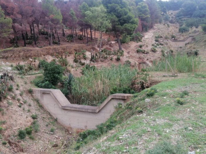 In un tratto sono cresciuti anche i fichi d’india. E per vedere in che condizioni si trovano i canali basta semplicemente percorrere la strada per Erice o la provinciale per Pizzolungo. A Martogna, proprio tra i due cancelli dell’area demaniale, già si vede in che condizioni è il canale che poi passa sotto la strada provinciale. Da qui dovrebbe essere convogliata l’acqua raccolta nell’area demaniale, per metà devastata dall’incendio dello scorso 5 maggio. Dovrebbe. Ma così non è. Vediamo di capire perchè.