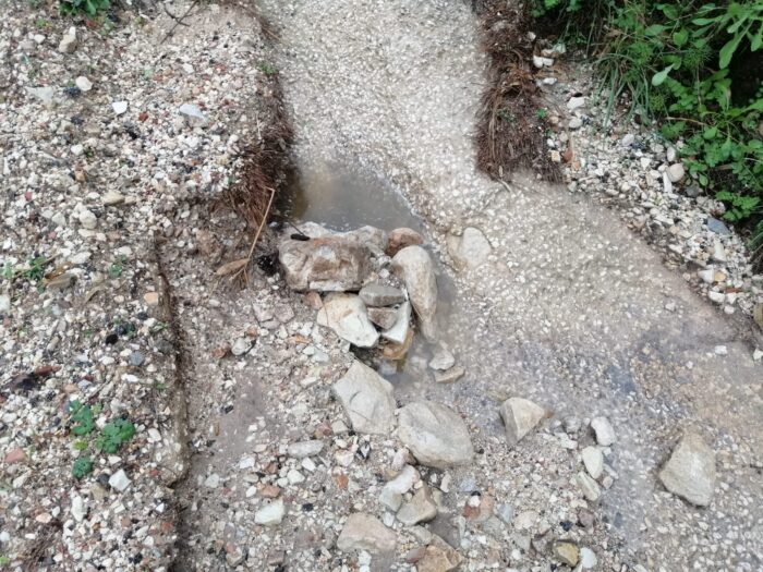 Ma nel 2022 le cose sono cambiate e l’acqua piovana non viene più convogliata come una volta nel sistema di raccolta messo a punto quaranta e passa anni fa: i canali in molti tratti sono ostruiti da detriti e vegetazione. In molti casi c’è anche spazzatura abbandonata. E così l’acqua si fa strada liberamente dove trova spazio, scendendo lungo la montagna in tanti rivoli, formando in alcuni tratti veri e propri torrenti: scavando profondi solchi e addirittura scoperchiando strade, come nel caso di Sant’Anna, dove i nubifragi dei giorni scorsi hanno anche fatto riaffiorare l’antico basolato.