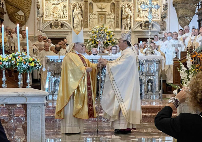 «Dobbiamo guardare al mondo con gli occhi di Dio, senza odio, emarginazione, ricerca del potere. Questa è la Chiesa che dobbiamo permettere allo Spirito di edificare e rafforzare. Qui a Mazara prenderemo le distanze da ogni forma e ricerca di potere, risaneremo ogni divisione, ci impegneremo a percorrere vie di unità e di sinodalità. Prediligeremo la sobrietà e sceglieremo la semplicità e l’umiltà». È un passaggio dell’Omelia del nuovo Vescovo monsignor Angelo Giurdanella nella celebrazione eucaristica di insediamento, ieri in Cattedrale a Mazara del Vallo.
