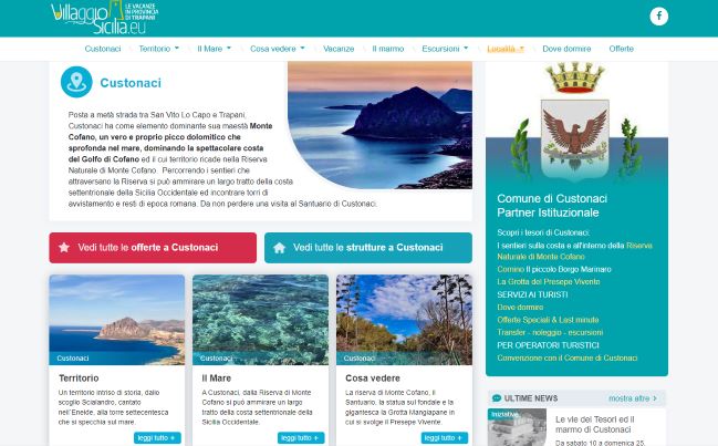 Per Custonaci si sono superate le 7.000 pagine visualizzate con circa 500 contatti effettivi per le strutture attive nel territorio comunale presenti nel portale. E’ stata inoltre realizzata un’area informativa per presentare le molteplici attrattive del territorio, dal mare all’entroterra, dal marmo alle tradizioni popolari.