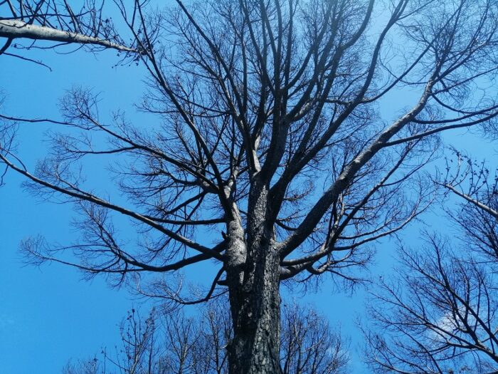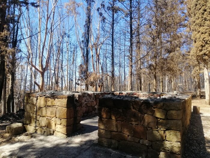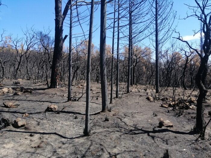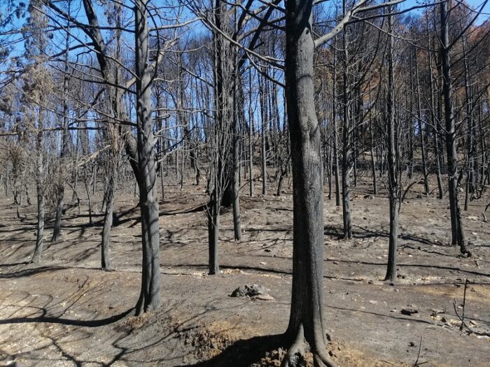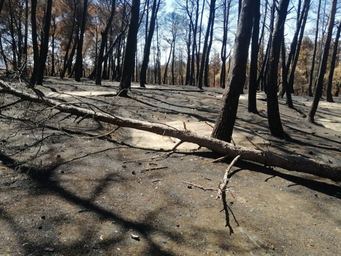 Per il resto non c’è più nulla, così come il “pagghiaro” al cancello di ingresso, la capanna con il caratteristico soffitto di paglia completamente polverizzata. Ridotta in cenere così come le tante piante, arbusti e tutta quella biodiversità che accompagnava il cammino nei sentieri di Bosco Scoarace, tra i profumi delle tante essenze e l’aria buona che veniva fuori dai pini, lecci, roverelle, frassini e tutte le specie che componevano la grande distesa verde di quest’area boschiva, dove sono passate intere generazioni provenienti da tutto il territorio circostante. Di quel mondo, purtroppo, oggi non resta più nulla, se non la cenere per terra, i tronchi anneriti, gli alberi bruciati e la desolazione più totale avvolta in una puzza di bruciato che pervade tutto.