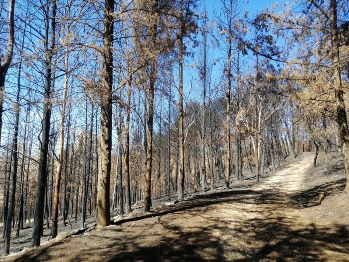 Il 18 agosto un vaso incendio devastava quasi completamente Bosco Scorace. Il fuoco ha divorato qualcosa come 600 ettari di area boschiva, su un totale di circa 750 ettari. Praticamente sono rimaste piccole zone di verde, a macchia di leopardo, circondate dagli alberi bruciati e dal sottobosco bruciato. Distrutti anche i tavoli dell’area attrezzata. Ne è rimasto qualcuno proprio nei pressi del posteggio.