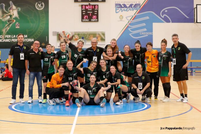 Due vittorie nelle prime due gare del campionato per le ericine dell’Handball che al Pala Cardella sabato hanno battuto Mestrino. 27-20 il risultato finale di una partita condotta dall’inizio alla fine, con un’ottima prova della Mirkikj, autrice di 9 gol, e tra i pali della Iacovello. Soddisfatto l’allenatore Filiberto Kokuca.