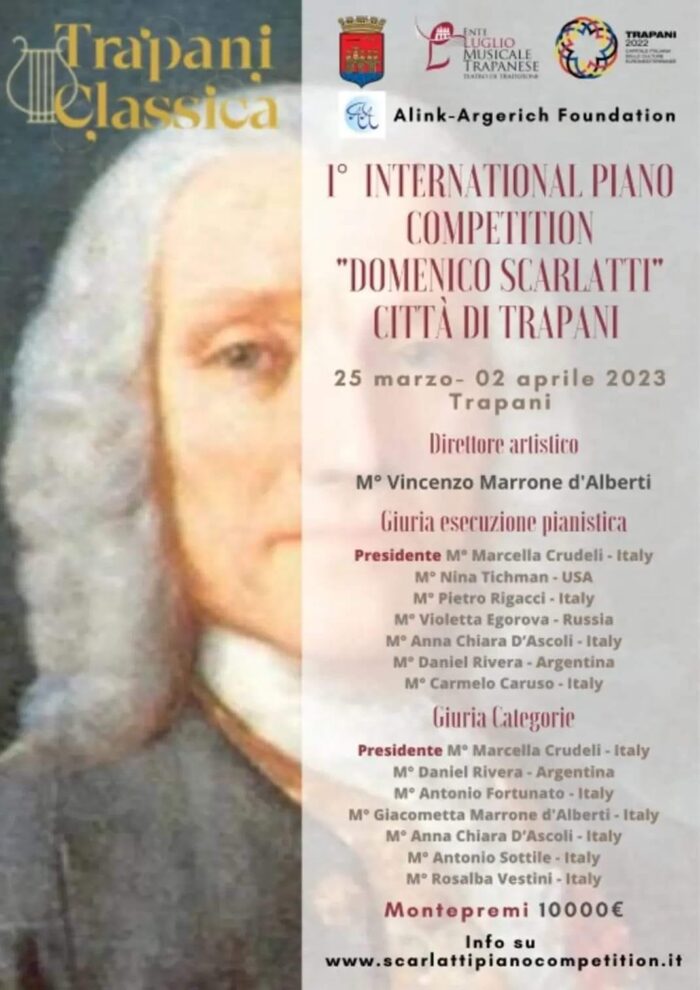 Comincia il conto alla rovescia a Trapani per il 1° International Piano Competition “Domenico Scarlatti” – Città di Trapani, competizione di primo livello, organizzata in collaborazione con il Comune di Trapani e l’Ente luglio musicale, che richiamerà giovani e geniali pianisti da tutta Italia e dal mondo, inserita nell’ambito della Fondazione Alink – Argerich, Centro mondiale indipendente di informazioni e servizi per musicisti e concorsi. L’evento è in programma dal 25 marzo all’1 aprile.