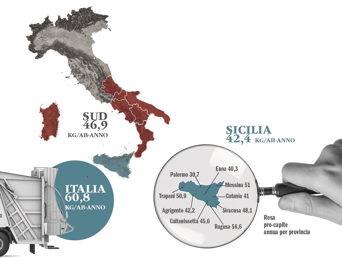 Otto delle 9 province siciliane fanno registrare una crescita della raccolta differenziata di carta e cartone. Secondo il 27° Rapporto Annuale diffuso da Comieco, solo nell’isola ne sono state infatti raccolte e correttamente avviate a riciclo oltre 205.000 tonnellate con un aumento di più di 14.000 tonnellate rispetto al 2020 per una crescita pari al +7,6%. La Sicilia è stata una delle regioni più virtuose dell’ultimo anno. Per la prima volta nella sua storia ha raggiunto la media pro-capite di 42,4 kg per abitante. Analizzando i dati del Rapporto nel dettaglio emerge come tutte le province siciliane crescano in maniera considerevole, con l’eccezione della provincia di Palermo che presenta una contrazione del 3,3% rispetto all’anno precedente. In testa c’è la Provincia di Ragusa con una raccolta di 56,6 kg per abitante per anno (pari a quasi 18.000 tonnellate), segue Messina con una raccolta pro-capite di 51 kg/ab (pari a differenziate più di 31.000 tonnellate), terza Trapani con 50,9 kg/ab (pari a 21.000 tonnellate) Tutte le altre attestate tra 48 e 40 Kg per abitante. Solo la provincia di Palermo è ampiamente al di sotto con 30 kg per abitante. A livello nazionale, nel 2021 la raccolta differenziata di carta e cartone delinea una situazione caratterizzata da un andamento ovunque positivo. Oltre 3,6 milioni di tonnellate di materiale cellulosico sono stati differenziati complessivamente in tutto il Paese con i volumi complessivi di raccolta comunale in crescita di oltre 110.000 tonnellate (+3,2%) e la media pro-capite del Paese supera per la prima volta i 60 kg/ab. Dal Rapporto Comieco risulta come l’Italia per il secondo anno consecutivo abbia raggiunto l’obiettivo UE 2030 per il tasso di riciclo degli imballaggi cellulosici fissato all’85%, traguardo tagliato già l’anno precedente con 10 anni di anticipo.
