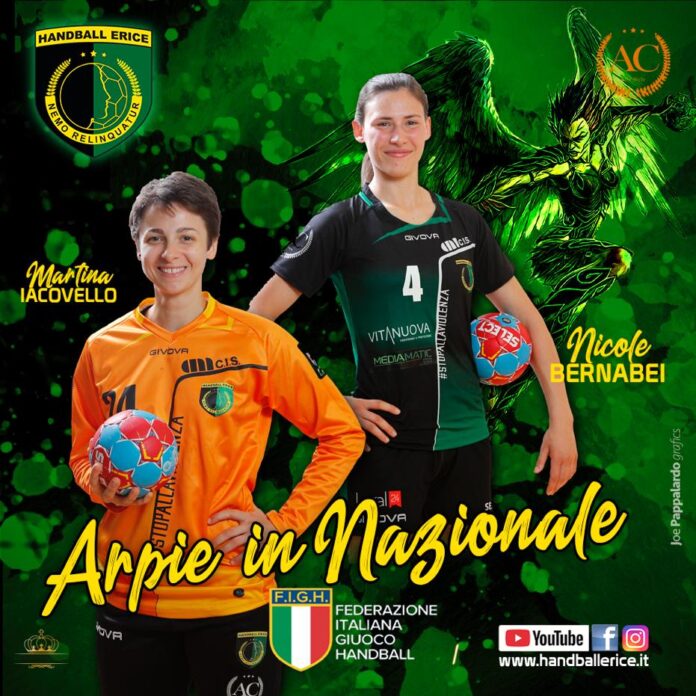 Martina Iacovello, portiere, Nicole Bernabei, terzino atlete dell’AC Life Style Handball Erice, sono state convocate nella nazionale italiana, dal 25 settembre al 2 ottobre a Chieti, in vista dei prossimi impegni del 2 e 6 novembre quando le azzurre sfideranno la Bulgaria nel primo turno di qualificazione per i Mondiali 2023. Orgoglio e soddisfazione sono state espresse dalla società e dalla dirigenza nero-verde. ”Siamo orgogliosi di Martina di Nicole – ha commentato il Vice Presidente Norbert Biasizzo -. Siamo felicissimi per Iacovello perché dopo l’infortunio ha lavorato sodo per ritornare tra i pali più forte di prima e questo è il risultato di tanti sacrifici. Orgogliosi anche per la nostra guerriera “Apache” Nicole Bernabei che non era mai stata convocata con la nazionale”. Intanto le Arpie si preparano per le 3° giornata di Campionato contro la Jomi Salerno, sabato 24 Settembre alle ore 18:30. La partita sarà visibile su elevensport.it