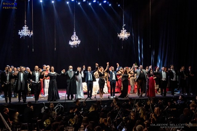 Protagonista anche l’Orchestra Filarmonica della Sicilia e il Coro Lirico Mediterraneo diretti dalla Direttrice Alessandra Pipitone, regia di Salvo Dolce, coreografie Stefania Cotroneo, costumi Fabrizio Buttiglieri, light designer Gabriele Circo, fotografia Giuseppe Bellomare, ufficio stampa Pamela Giampino, direttore artistico Nuccio Anselmo.