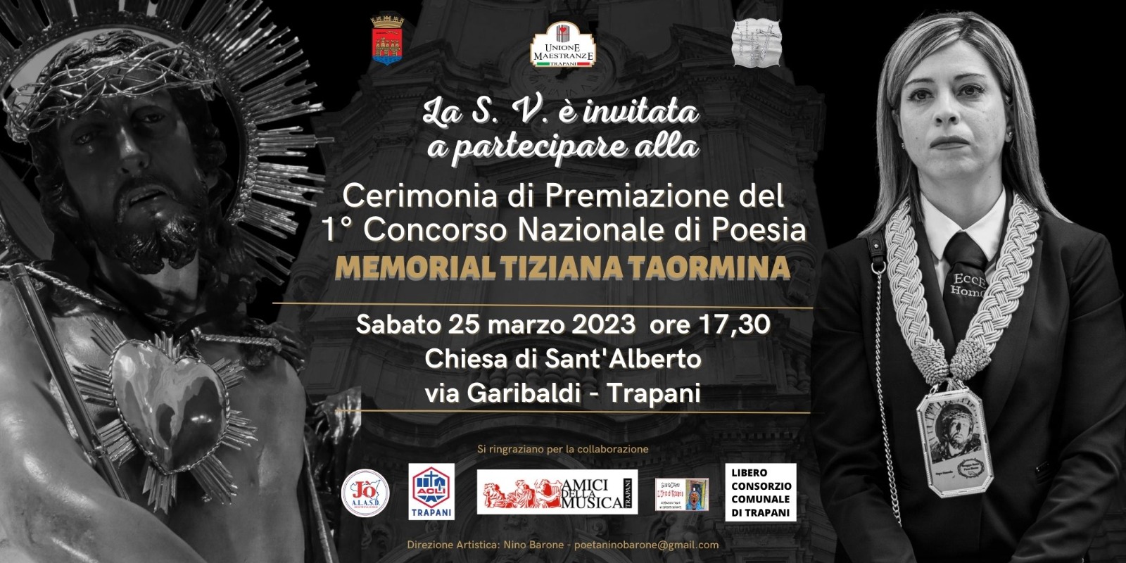 Continuano, a Trapani, le iniziative in memoria di Tiziana Taormina assai conosciuta in città, soprattutto nel mondo della processione dei Misteri. Oggi , alle 17,30, nella chiesa di Sant’Alberto di via Garibaldi, nella zona del centro storico, si svolgerà la cerimonia di premiazione del primo concorso nazionale di poesia dedicato a Tiziana, scomparsa prematuramente. La manifestazione è stata organizzata dall’Unione maestranze di concerto con l’associazione La strada della Passione e il Comune di Trapani.