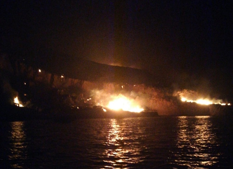 L’allarme è scatto alle due e mezzo di notte. Nel complesso turistico residenziale di Calampiso erano presenti solo i dipendenti della struttura ricettiva e nessun turista né avventori. Le persone presenti all’interno del complesso, non potendo fuggire all’interno del territorio, vista l’impossibilità di procedere verso “monte”, si sono rifugiate sulla vicina spiaggia, per evitare di affrontare l’incendio oramai propagatosi su tutta la scogliera e, pericolosamente, anche vicino al mare sottostante.