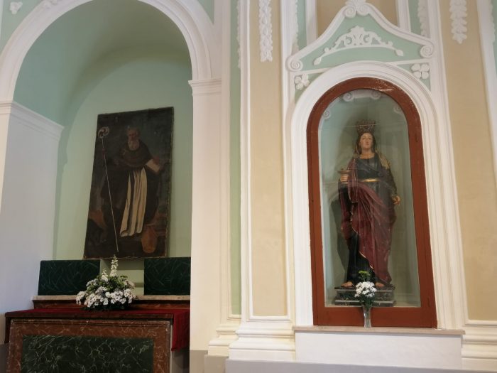 Nella chiesa, un autentico gioiello carico di storia e fede, sono presenti, oltre la bellissima statua di Santa Lucia, anche delle immagini di Sant’Alberto e Santa Rita. Ma la sua peculiarità, che la rende senza ombra di dubbio unica, è la sua cripta sotterranea , accessibile da due botole laterali, dove venivano sepolti i confrati della Confraternità del Rosario, soppressa nel 1930.