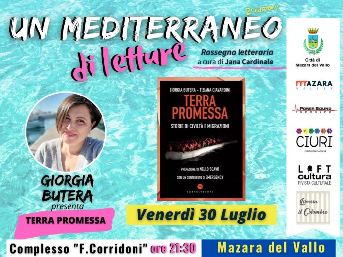 Terzo e ultimo appuntamento con “Un Mediterraneo di Letture” – la rassegna letteraria organizzata dalla Power Sound Service in collaborazione con l’Associazione Culturale ‘Ciuri’ e il patrocinio del Comune di Mazara del Vallo – venerdì 30 luglio, con inizio alle ore 21.30 al Complesso Monumentale Filippo Corridoni. Ospite dell’appuntamento sarà Giorgia Butera, che presenterà il suo nuovo libro dal titolo ‘Terra promessa. Storie di civiltà e migrazioni’, con prefazione di Nello Scavo e un contributo di Emergency.