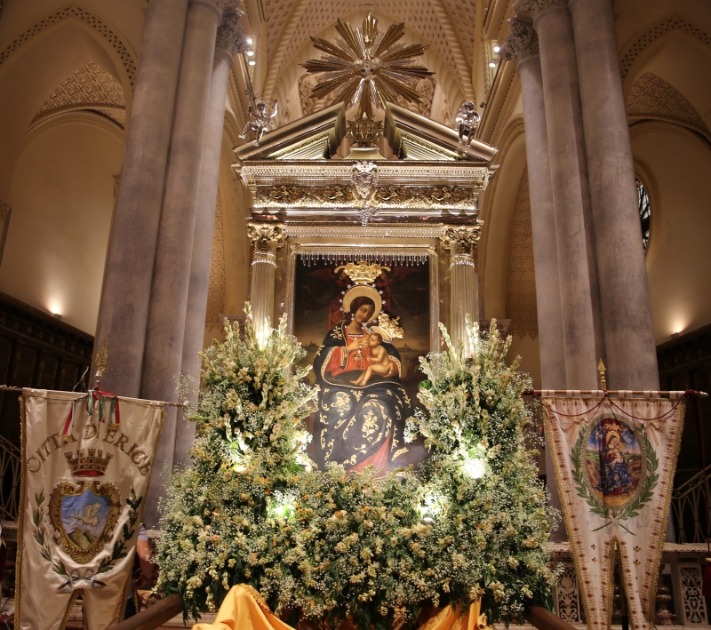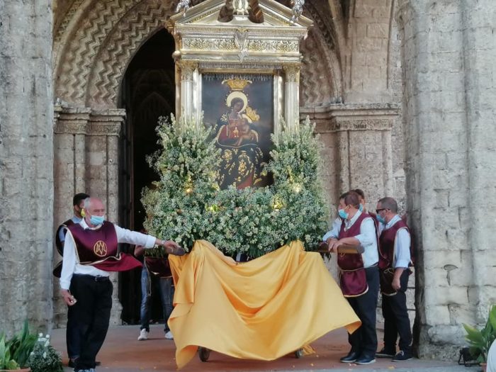 Ieri a Custonaci e al Erice si sono tenute le celebrazioni in onore della Patrona dell’Agroericino. Non potendosi tenere le processioni, le due immagini della Madonna sono state portate davanti il portone del Santuario e nel sagrato del Real Duomo.