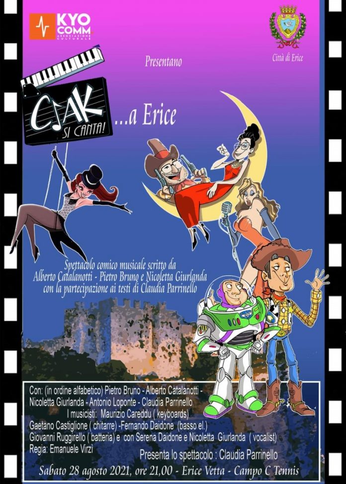 Si continuerà, alle ore 21.00, negli spazi dei campi da tennis ad Erice, con “Ciak si canta ad Erice” a cura dell’ Associazione Kyo Comm.