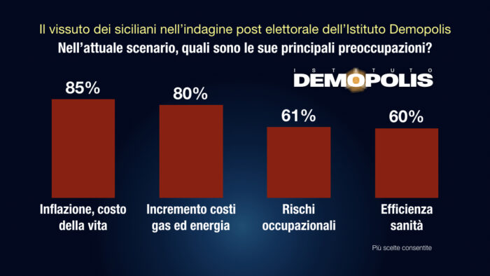 Demopolis ha analizzato infine le preoccupazioni economiche delle famiglie e l’agenda dei siciliani per il nuovo Presidente della Regione.