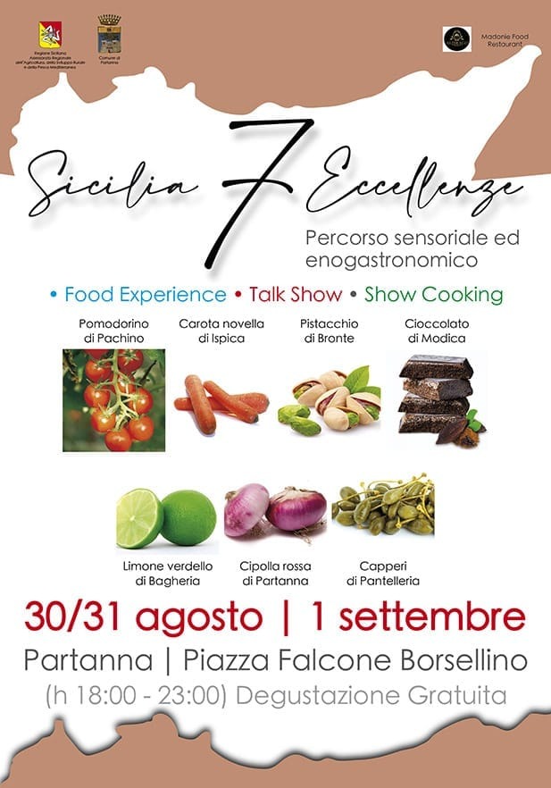 “Sicilia 7 Eccellenze” è il nome della manifestazione enogastronomica che prenderà il via domani a Partanna per concludersi giorno 1, in piazza Falcone e Borsellino. L’evento comprende dei percorsi sensoriali ed enogastronomici con show coking sul palco a cura di un team di chef che si alterneranno tutti e tre i giorni a partire dalle ore 19 per la promozione delle sette eccellenze siciliane: pomodoro di Pachino, la carota novella di Ispica, il pistacchio di Bronte, il cioccolato di Modica, il limone verdello di Bagheria, la cipolla rossa di Partanna e i capperi di Pantelleria. Dalle ore 20, invece, saranno disponibili le degustazioni dei prodotti disponibili nelle casette allestite nella piazza.