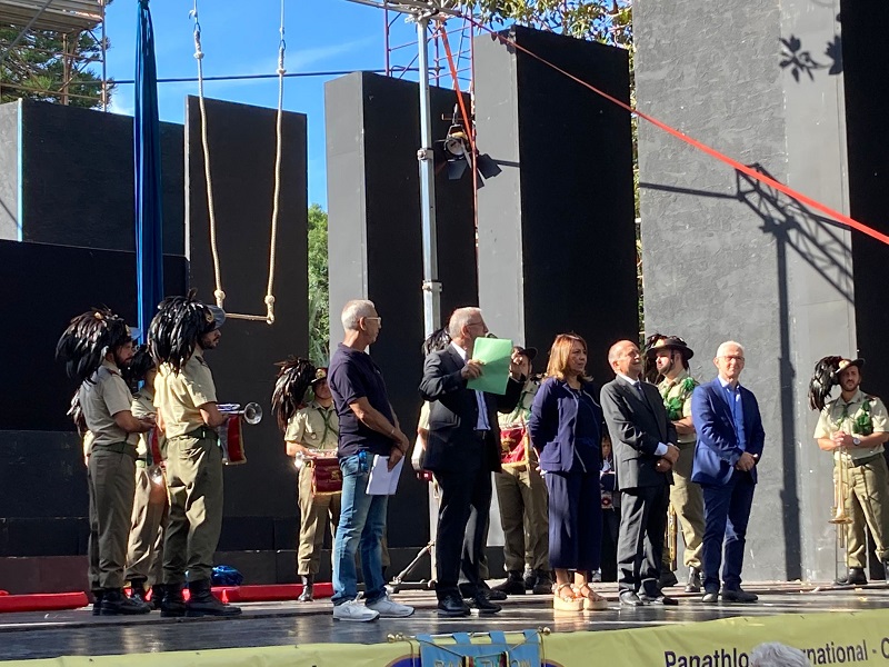 Il saluto delle Istituzioni e le esibizioni delle diverse discipline sportive sul palco del Teatro De Stefano all’interno della Villa Margherita.